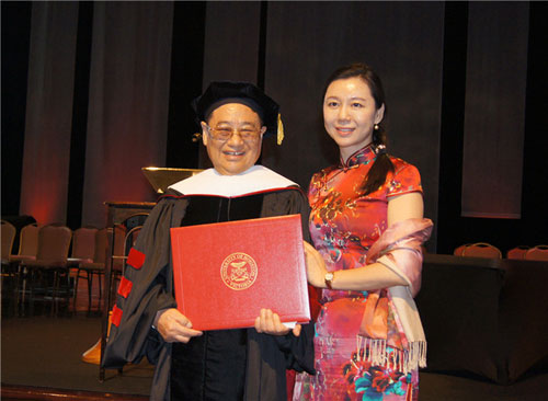 吴炳新董事长上台接受学位授予