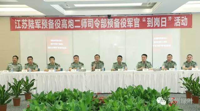 2016年6月7日,为进一步提高各级预备役军官军事基础技能,加强履职尽责意识,江苏陆军预备役高炮第二师司令部预备役军官“到岗日”活动在绿叶集团成功举行。江苏陆军预备役高炮第二师副参谋长巫国胜,预备役军官、绿叶集团董事长徐建成先生,预备役军官、江苏腾辉集团董事长孟庆中先生,预备役军官、江苏比高集团董事长黄亚强先生共同出席本次活动。
