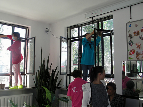 擦玻璃、扫院子、铲煤灰,完美爱心人不怕脏、不怕累,每人尽心付出努力,希望完美爱心能给老人们带来浓浓的关爱。