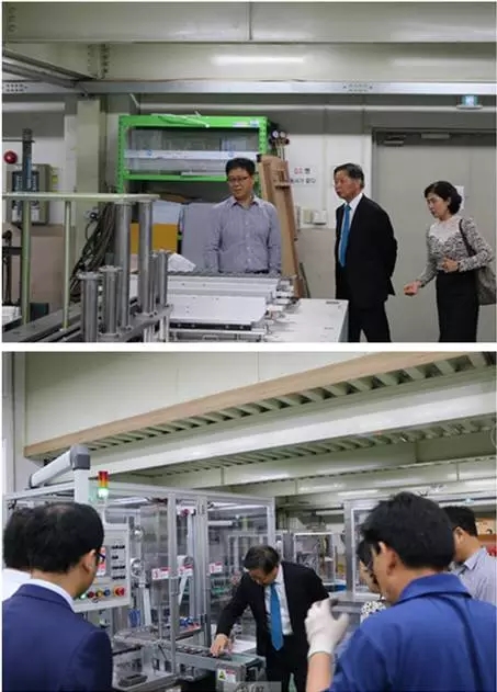 随后徐董一行在韩国WOOJUNG公司会长崔东必的陪同下来到WOOJUNG的化妆品生产工厂进行考察。