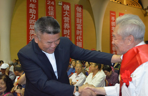 其中,来得最早的、坐在家人席第一排的,有几位都是90岁高龄的老人,身体非常健康。他们一直在感谢珍奥和双迪的产品为他们送来了健康,让他们能够老有所为,安享晚年。这些长寿老人的莅临,是对珍奥、双迪产品质量的肯定,是对陈玉松“立足生命科学,造福人类健康”博大胸怀与志向的景仰,是对珍奥、双迪以孝为先的大爱文化的褒奖,更是对珍奥、双迪事业不断冲刺行业“制高点”的激励!