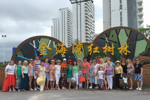 10号上午早餐后游览了金海湾红树林生态休闲旅游度假区。红树林是热带、亚热带海湾、河口泥滩上特有的常绿灌木和小乔木群落;它生长于陆地与海洋交界带的滩涂浅滩,是陆地向海洋过度的特殊生态系;突出特征是根系发达、能在海水中生长,是一种稀有的木本胎生植物。