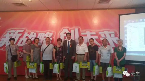 自荟生公司2014年成立“一善基金”以来,全国各地陆续掀起了公益慈善活动的浪潮,践行荟生公司“日行一善,成人达己”的核心价值观。荟生(海南)健康产业有限公司常务执行副总裁刘卫华先生代表荟生公司向家人们送去了温暖——金芦荟口服液和黑苦荞米。捐助环节,将整场推介会推向了高潮。