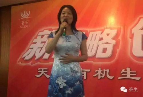 来自山西运城的荟生家人郭聪玲女士上台分享了荟生产品在自己身上发生的奇迹:她,一名妇产科医生,因为先天身体问题加上多年的职业生涯导致骶管囊肿卧床不起,经国内多家知名医院专家会诊并施行手术后,病情更不如以前,40天卧床不起、4个多月下不了楼。在服用荟生产品四个月的时间后,身体各方面逐渐好转,她又可以和正常人一样逛街了!作为医生的她,重新认识了保健品,感恩荟生产品的神奇并开始向周围朋友分享、推荐,成为了荟生公司一名合格的经销商。真实、动人的分享及爱的承诺感动了全场的参会者!