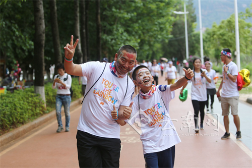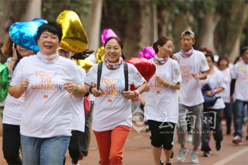 据了解,彩虹跑灵感源自“彩粉跑”,最早起源于印度的洒红节。云南,彩云之南,七彩的土地;彩虹是桥梁,架起了献血者和用血者之间的爱心桥梁;彩虹,经历风雨方能见彩虹,是患者获得新生的寓意;来自不同职业不同年龄的无偿献血者,如同七色的彩虹汇聚到一起,为拯救生命献出大爱,是这片天空最美的风景……