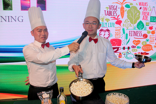 动听的音乐再次响起时,健康帅气的厨艺达人齐齐亮相舞台,为来宾奉上了一道“健康饕餮营养餐”,十余款用完美产品制作的令人垂涎欲滴的美点一登场,就牢牢吸引众人的目光。随后,分公司又精心安排了健康沙龙的实操演示环节,茶油肽藻点心、一生糖茶油爆米花的香气弥漫在整个会场,引得台下观众食指大动,活动在开心快乐的抽奖环节中圆满落幕。