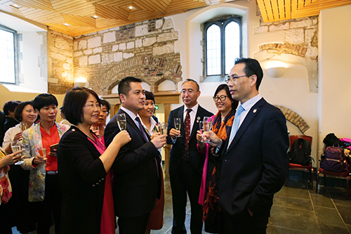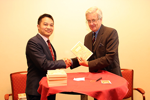 英国时间6月21日,北大新时代卓越领导人工商管理研修班(二、三、四期)的学员们迎来了激动人心的结业仪式。在仪式开始前,英国知名作家、历史学家、剑桥大学博物馆馆藏委员会主席柯瑞斯教授为每位学员在其著作《剑桥大学与小镇800年》上签名并合影留念。随后学员们穿上了剑桥大学学士服,柯瑞斯教授亲手颁发了剑桥大学的结业证书。学员代表陈思伊向柯瑞斯教授赠送公司即将上市的产品——国珍红·红茶。为了庆祝本次剑桥培训圆满结束,公司特意安排了别具特色的结业宴会,祝贺各位学员顺利结业。