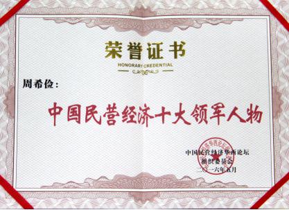 许多优秀企业家在改革的大潮中一展领袖本色,在中国民营经济的发展进程中树立了良好的典范。作为中脉健康产业集团董事局主席,周希俭凭借科学的决策能力、强大的管理能力以及掌握企业未来发展方向的判断能力等,带领中脉持续发展成功。现在,中脉已经从单一远红外产品发展至多品种、多产品、多领域的品牌。基于周希俭对中脉以及对行业的贡献,组委会授予周希俭“中国民营经济十大领军人物”称号。