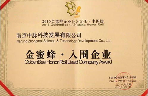 6月6日—7日,在北京召开的第十一届中国企业社会责任国际论坛暨2015“金蜜蜂企业社会责任•中国榜”发布典礼上,中脉从300多家参评企业中脱颖而出,荣膺 “金蜜蜂•入围企业奖”。