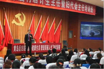 (图为长青商学院院长蒋永青曾应邀为黄岛妇联讲授健康知识)