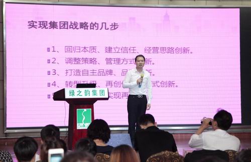 2016年上半年,融合创新、引领发展成为绿之韵事业号角的主旋律。配合国家“一带一路”、湖南“一带一部”战略建设,应对行业新常态、新趋势,绿之韵集团部署多项重要战略举措,开启绿之韵企业多元化、资本化、国际化发展新局面。会上,绿之韵集团(中国区)执行总经理(全球营销中心)、天城网总经理谌献军从行业发展趋势、云商战略调整、集团战略五大步骤、资本化商业模式等多个角度为所有绿之韵家人们描摹出了绿之韵“互联网+大健康+大资本”的恢弘发展蓝图,坚定了所有绿之韵人凝心聚力、无往不利的事业信心。