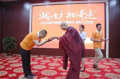 凝心聚力谋发展,共创奇迹谱新篇。王宗继董事长在总结发言中指出,2016年上半年是集团十分不平凡、充满挑战、赢取胜利的阶段,面对严峻复杂的经济形势,市场精英们群策群力、努力拼搏,圆满完成了上半年的目标任务,他衷心感谢所有市场精英的辛勤付出。面对下半年的挑战和各项工作,董事长作了重要战略部署,卫康将继续坚持“一体两翼”的战略布局,跳出直销做直销,加强孝爱文化、产品文化和共赢文化的打造,与市场精英、全体家人心连心、手牵手,共同创造新的市场奇迹。董事长的讲话让大家明确了战略方向、奋斗目标,对卫康的未来充满了坚定的信心和冲天干劲。