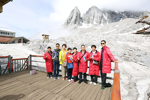 6月28日,丽江出现了难得的晴天。早上8点,学员们兴致勃勃地前往高原雪域美景——玉龙雪山。山上空气稀薄,对每个人的体力和耐力都是个严峻的考验, 值得骄傲的是没有任何一个人放弃攀登计划。当大家登上玉龙雪山顶之时,玉龙雪山也露出了真面目。白云萦绕山峰,更有一种人间仙境的感觉。下午学员们还参观 了玉水寨和束河古镇。