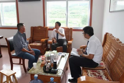 王莹副总裁与大贞村杨书记进行亲切交谈,就大贞村的人口情况、劳动力状况、农民收入来源、经济作物情况等各方面进行详细了解,就大贞村目前的发展建设情况进行调查,就大贞村目前需要重点帮扶项目进行总结。
