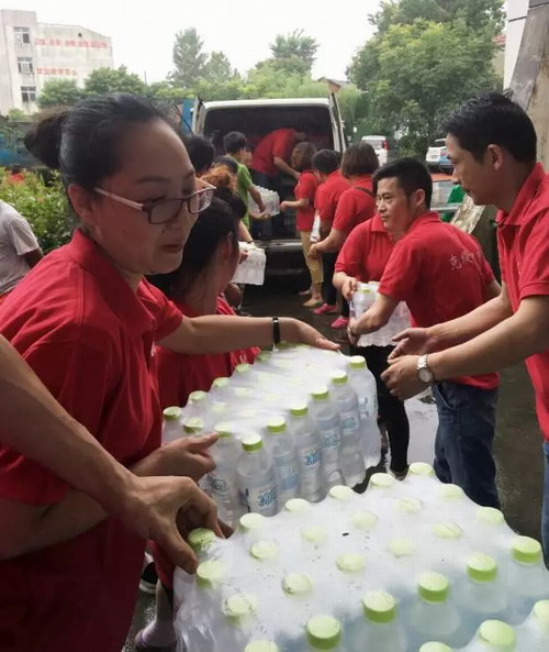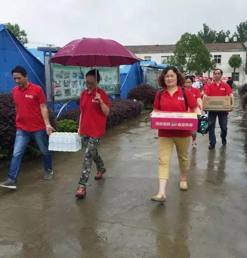 7月5日早上7点,天空依然下着雨,克缇(中国)湖北分公司携手由湖北克缇家人曹宝霞女士带领的20多位克缇伙伴,与5辆满载着克缇牵挂和救灾物资的汽车,一起赶往受灾最严重的武汉新洲灾区。