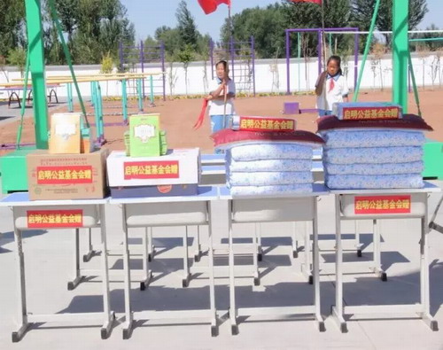 巴彦淖尔市杭锦后旗查干中心学校是启明公益基金会此行的目的地,这样一所农村学校,留守儿童是一个突出的问题,他们的父母常年在外打工,孩子由爷爷奶奶或亲戚照看——他们是这个时代的孤儿,他们的成长与中国的未来也息息相关。为呼吁社会关注留守儿童,让社会的未来健康成长,6月28日,启明公益基金会向查干中心学校捐款捐物,捐赠物资中包括蕴含丰富知识的科技读物、开拓眼界的的历史文化书籍,和蕴含丰富想象力的童话故事等,除此之外还有部分学习用品和生活用品。
