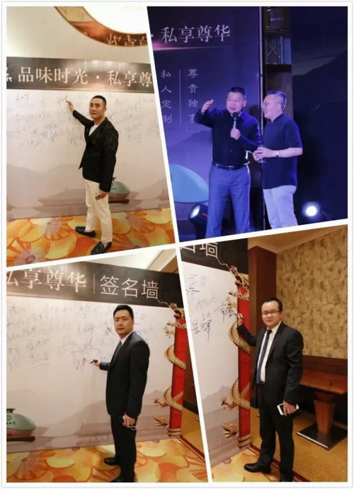 由10年、30年、50年老酒精心调制出的高端定制酒是什么味道?7月5日晚,“品味时光 私享尊华”——嘉尊私享品鉴晚会在大连日航酒店尊贵开启。康美时代总经理朱庆华、副总经理张丽君、市场中心总监郑旭东、商学院院长蒋涛、拓展中心总监郑强、品牌中心总监章猛,各地分公司经理,特邀嘉宾首届中国酿酒大师沈才洪、泸州老窖养生酒业总经理杨平及主要的市场业务伙伴出席了晚会,一起为大家揭开谜底。