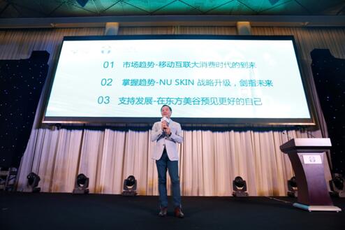 (图为NU SKIN如新中国总裁暨大中华区域副总裁郑重先生分享NU SKIN 如新品牌升级战略)