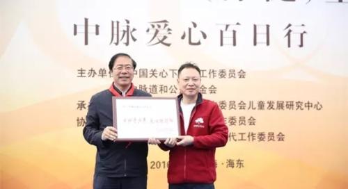 青海省海东市市委书记于从乐向中脉道和公益基金会理事长张建仑颁感谢牌匾
