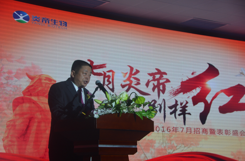 2016年7月16日上午,“炎帝七月别样红”月度招商暨市场表彰大会在株洲总部如期而至,炎帝生物董事长黄佳林,上海三湘副总裁厉农帆,炎帝全球执行总裁、董事CEO钟建和率公司高管、各个系统领袖以及市场伙伴出席了活动。