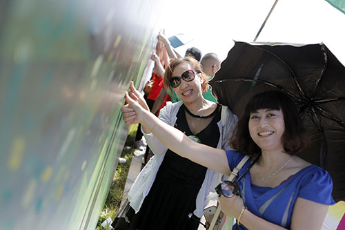 随后,大家精神饱满、意气风发地踏上了国珍畅走之旅。路线的起点、途中、终点设置了多个服务站点,便于伙伴们及时补充水分,同时保障大家的交通安全。每到一处,国珍志愿者都会及时提醒大家注意防晒,呵护肌肤,及时补充能量,同时告知大家不必追求速度,要根据个人体质和身体状况量力而行。在终点服务站,大家纷纷在背板上按下手印,分享成功的喜悦,为自己和伙伴顺利走完全程点赞。