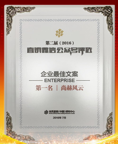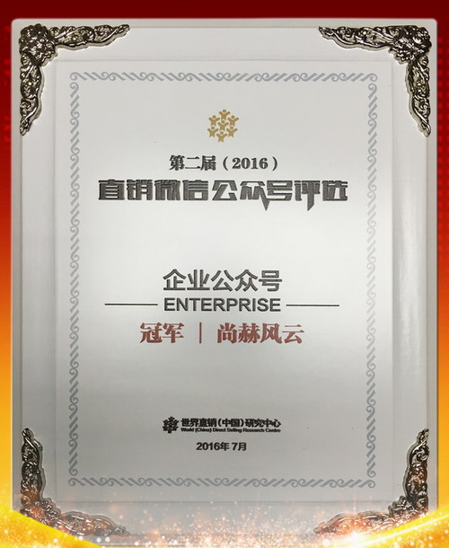 2016,尚赫风云走进第二届直销微信公众号评选,独占鳌头,荣膺企业公众号冠军,并包揽所有奖项,获得“大满贯”。时刻紧跟品牌发展走向,把握行业前进趋势,分享生活热点话题。走进尚赫风云,让您了解一个行业与一群人——直销和直销人。