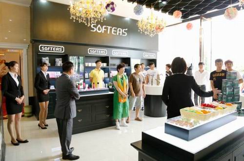 中国短道速滑队运动员参观SOFTEAS专卖店