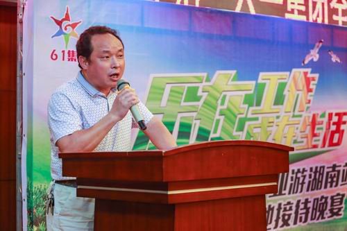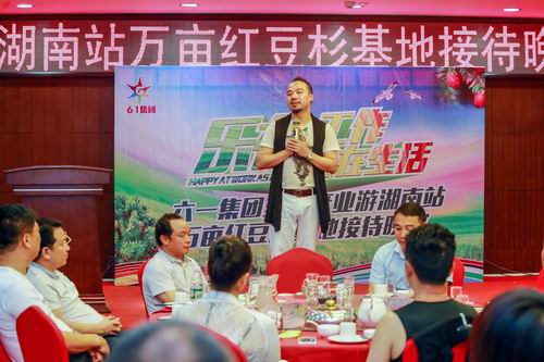 此次湖南游,得到了当地政府的高度重视和大力支持。欢迎晚宴上,商务粮食局赵刚副局长受祁阳县委县政府委托,向参加此次湖南游的六一家人们表示了热烈的欢迎,同时,作为金克成董事长家乡的老朋友,他也对六一集团选择回到家乡、奉献家乡的行为表示十分欣慰,祝愿六一集团在祁阳的红豆杉项目发展顺利,祝愿六一集团的未来发展前景广阔,也祝愿本次湖南游圆满、顺利、开心。