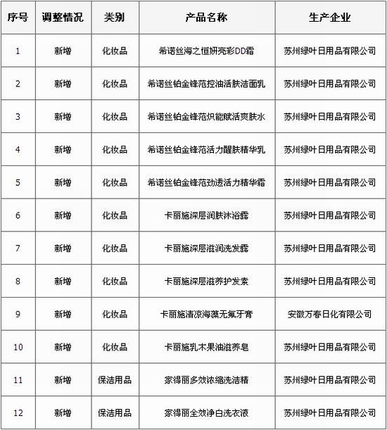 2016年7月25日,商务部直销行业管理信息系统网站公示苏州绿叶日用品有限公司调整直销产品信息。苏州绿叶此次新增化妆品10款、保洁用品2款。详情如下: