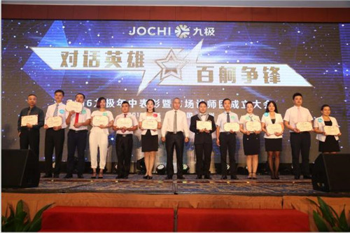 广东九极生物科技有限公司总裁宁水生先生、总裁助理侯瑞霞女士、全国营销总监顾伟奇先生、数据信息中心及人事总监杨哲女士、财务总监牛晓燕女士、教育培训中心经理许迪青女士、客户服务中心经理黄静儿女士等领导出席盛典,与在场所有业务精英共贺了九极首届市场讲师团隆重成立,共同见证2016年九极首款新品闪耀发布,为实现九极梦而前行,为实现九极腾飞而奋斗!