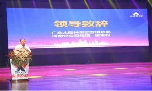随后,河南分公司经理崔常松为大会作精彩致辞,崔经理在致辞中向伙伴们传递了太阳神2016年财年“筑高壁垒,决胜终端”的总体战略方针,并详细讲解了公司2016财年所推出的一系列重大建设项目和市场促进方案,让伙伴们信心大增。