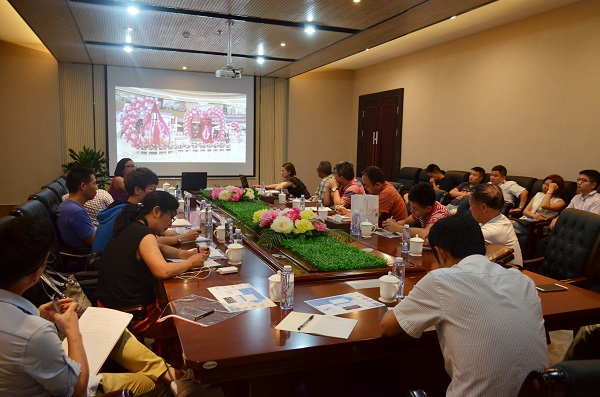在会议室,市场推广经理作具体推广策略分析,并与在座各位经销商共同探讨KA运营中存在的不足之处,积极分享自己的运营心得。