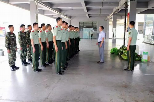 慰问期间,部队首长陪同公司领导一行参观了官兵宿舍及作战指挥室,公司领导对士兵们的良好生活习惯及优良的军事素质连连称赞。参观期间蒋总表示,非常欢迎部队为公司送来精神食粮,并邀请武警官兵到公司指导工作,适时举办座谈会,把部队的好作风、好思想、好方法传授给我们,把“向部队官兵学习”的号召落到实处。