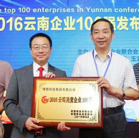 2016年7月30日,“2016年云南民营企业100强发布会暨大企业高峰论坛”在玉溪红塔大酒店隆重召开,发布会现场人头攒动,行业大咖云集。本届云南民营企业100强发布会将现场公布“云南企业100强”、“制造业企业50强”、“服务业企业50强”和“民营企业100强”等多项榜单,并对获评企业授牌。理想科技集团凭借其在全省经济社会发展中作出的突出贡献,继2015年后再次荣膺“2016云南企业100强”称号。这既是社会各界对理想科技集团的信任与认可,更是理想科技集团雄厚企业实力的展现。当日,理想科技集团副董事长焦少良代表企业出席本次会议并领奖。