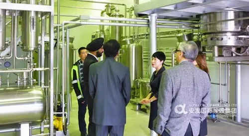 巴什议员一行兴趣盎然地参观了安发新西兰公司刚刚建成的提取发酵车间。在焕然一新、井然有序的新车间里,胡浩博士自豪地告诉巴什议员,这套全新的提取发酵设备是根据安发创始人、董事局主席高益槐教授多年的科研成果、多项专利发明,由安发自行设计并委托专业厂家量身定制而成。整套设备兼顾了多套工艺流程,具有用途广泛、工艺灵活性高、不同提取工艺切换快捷简便等特点。该套设备的落成投产,为安发国际运用现代化手段将科研成果转化为产品提供了便利条件和科技支持。巴什议员对此深表赞叹。