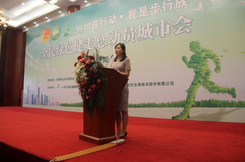 2016年7月26日上午,由共青团北京市委员会、共青团人民日报社委员会共同发起,人民日报社健康时报主办,北京东方红航天生物技术股份有限公司承办的“全民绿色健走总动员城市会——贵阳站”活动在贵州饭店国际会议中心隆重举行。