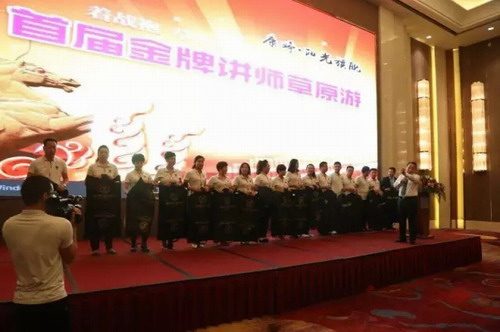 会议最后邢姐致辞,邢姐结合草原游的见闻,用成吉思汗的事例、摔跤手的事例鼓励各位金牌讲师在各地市场敢于亮剑,敢于拥有明知山有虎偏向虎山行的战斗精神。把康婷阳光旗舰事业做大做强。最后在大家热烈的掌声中会议圆满结束,大家愉快的合影留念。