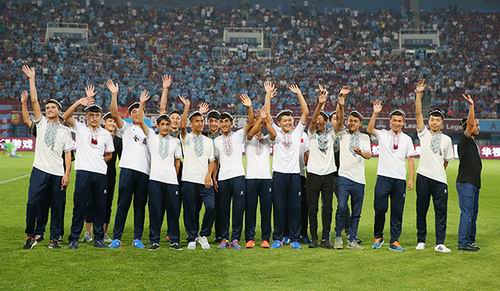 新疆自治区和田青少年足球队与各位领导合影留念