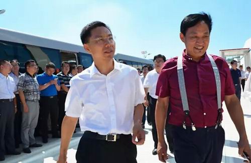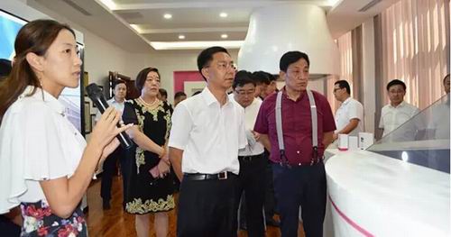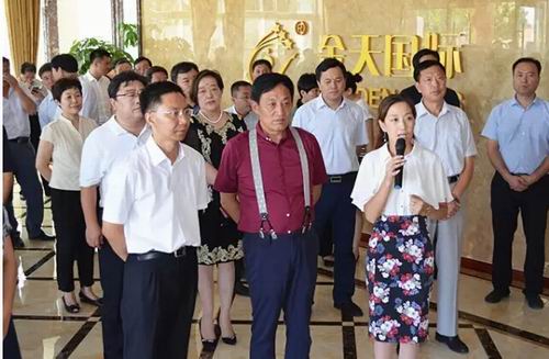 8月16日,由烟台福山区区委书记戴龙成,区委副书记、区长李金涛以及人大、政协等各部门主要负责人组成的经济发展考察团,一行100余人来到金天国际总部新厂区进行参观与指导。