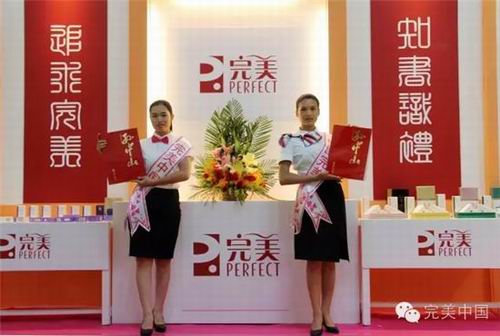 与新华书店相比邻的完美公司展位前,“追求完美·知书识礼”的镂空白字红底对联十分引人注目,米黄色主题墙、清雅的芦荟浅绿色及朱砂红木质展台,沉静、简约而别致。由董事长古润金策划编写的《孙中山》画册,流露着完美公司扎根伟人故里的历史积淀和文化传承。