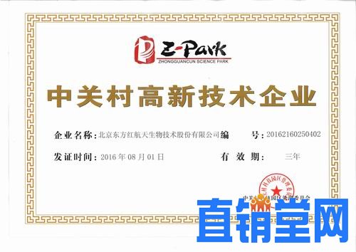 近日,北京东方红航天生物技术股份有限公司荣获“中关村高新技术企业”认证,这是东方红公司自2009年至今连续三次获得此项认证。