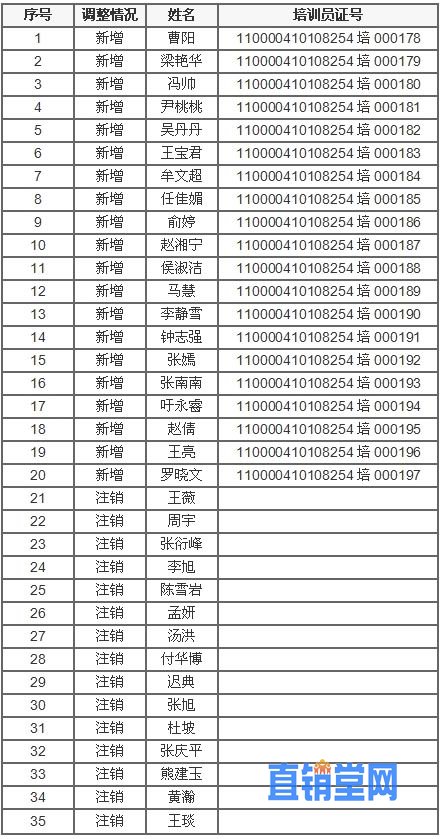 商务部公示宝健(中国)新增直销培训员20人