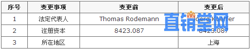 2016年9月6日,商务部直销行业管理信息系统公布福维克家用电器制造(上海)有限公司变更重大事项信息。信息表明,福维克法定代表人由原来的Thomas Rodemann变更为Joerg Koerfer,注册资本8423.087不变。详细情况如下: