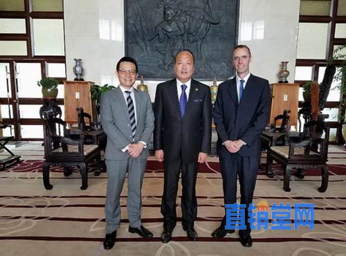 李金元董事长(中)与澳大利亚驻华大使馆商务参赞(右)及澳贸委高级商务官(左)合影