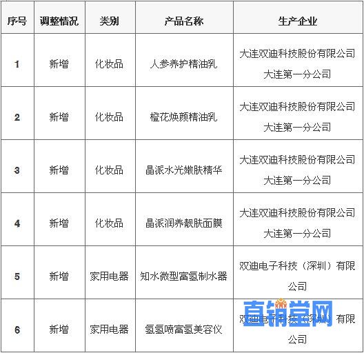 商务部网站公示大连双迪新增6款直销产品