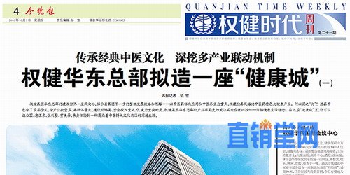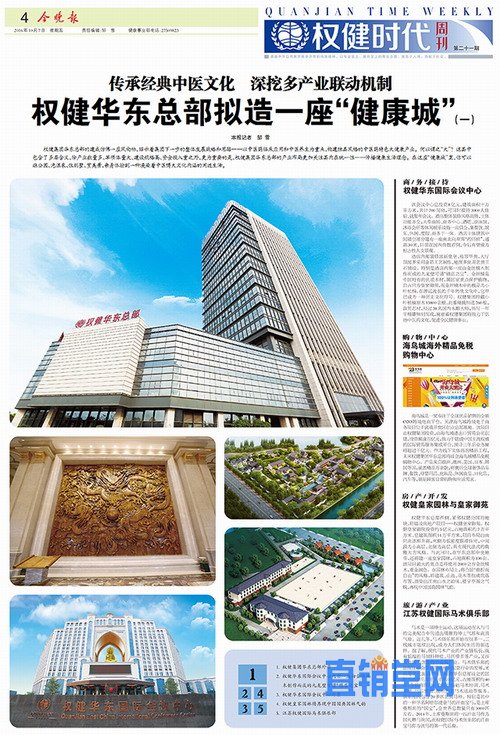 2016年10月7日,《今晚报•权健时代周刊》整版刊登《权健华东总部拟造一座“健康城”(一)》报道。