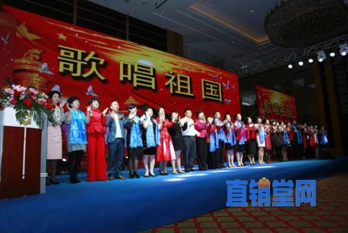 大会最后,公司领导、高级经销商代表上台,参会的家人全体起立,齐声高唱《歌唱祖国》,为即将到来的祖国67岁生日送上罗麦人最真挚的祝福。