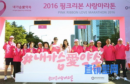 “粉红丝带爱心马拉松”旨在提高女性对乳腺癌的预防及保健意识,宣传乳腺疾病自我诊断的重要性。该活动作为韩国乳房健康财团主办的代表性活动,自2001年首次举办至今,已有16年的历史。继釜山站(4月)、大田站(5月)、光州站(6月)、大邱站(9月)之后的首尔站恰逢“10月乳腺癌防治月”,万余名参加者的热情将汝矣岛一带染成一片粉红色,给“粉红丝带爱心马拉松”活动画上了完美的句号。