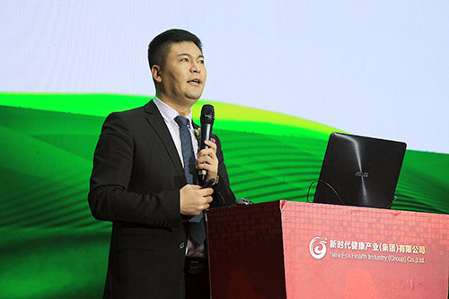 会议在“健康中国”的精彩视频中拉开序幕。首先,徐华锋副理事长发表讲话。他强调,“健康中国”是国家在十三五期间,党中央国务院要全面建成小康社会的大背景下制定的一项全局性的、战略性的、综合性国家战略,也是未来5年中国医疗健康事业的总体规划。“健康中国”战略不仅是加快经济发展方式转变的重要举措,更是为了满足人民群众日益增长的健康需求。让中国国民健康起来,需要靠全社会的共同努力,需要像新时代这样的健康产业界领军者的努力,需要像新时代人这样的健康传播者的努力。他认为,多年来,新时代健康产业集团用优秀的产品、真诚的服务赢得了社会各界的认可,为国家增加税收、促进就业、减少医疗支出做了巨大的贡献。新时代人持之以恒,以专心、专注、专业的态度,潜移默化地向大众传播健康理念、普及健康知识、做好健康管理,在润物细无声中,提升了大众的健康素养,这是新时代人对社会的最大贡献。他希望更多的人加入新时代,希望更多的朋友们因为新时代而更加健康,更加愉快,希望新时代人继续为中国的可持续、有质量的发展做出自己的贡献。
