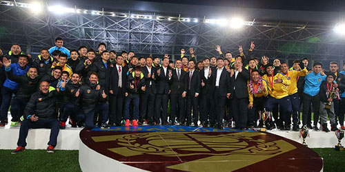 权健足球队冲超成功 全体队员获冲超功勋奖